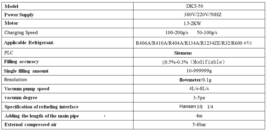 The refrigerant filling machine is suitable for quickly and quantitatively adding refrigerant to production line equipment, with vacuum pumping and leak detection functions.