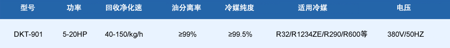DKT-901冷媒回收净化机专为大型制冷设备测试台的冷媒回收、净化循环使用设计,具有快速回收、净化功能,整机防爆设计适用于易燃易爆冷媒以及需要防爆的场所。